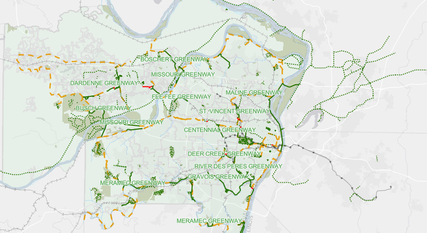 The greenway sounds lovely but St. Louis should do something about those dangerous street crossing problems!