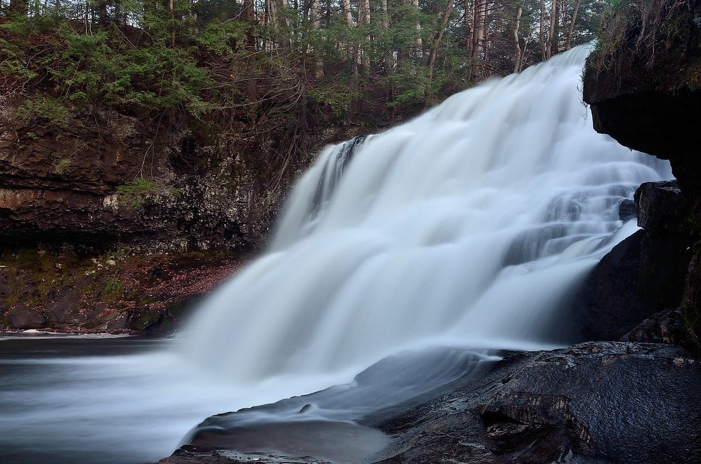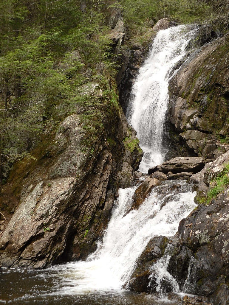 If you go weak in the knees at the thought of watching a freshly thawed waterfall roaring back to life—yielding a torrent of snowmelt, tree branches, and other forest detritus—you might instinctively look toward towering cliffs and boreal forests. In New England, most of the April waterfall chasing happens in places like Maine and Vermont, where the sawtoothed topography makes for some big ass, aquatic gods. But in 2026, after previously covering waterfall spectating in the Green Mountain and Pine Tree States, I want to focus on a less intuitive destination for this event. It’s a state which might appear smaller in stature, but which actually packs a real wallop when it comes to rivers or creeks spilling down hills. So this year, we’re going to Connecticut.