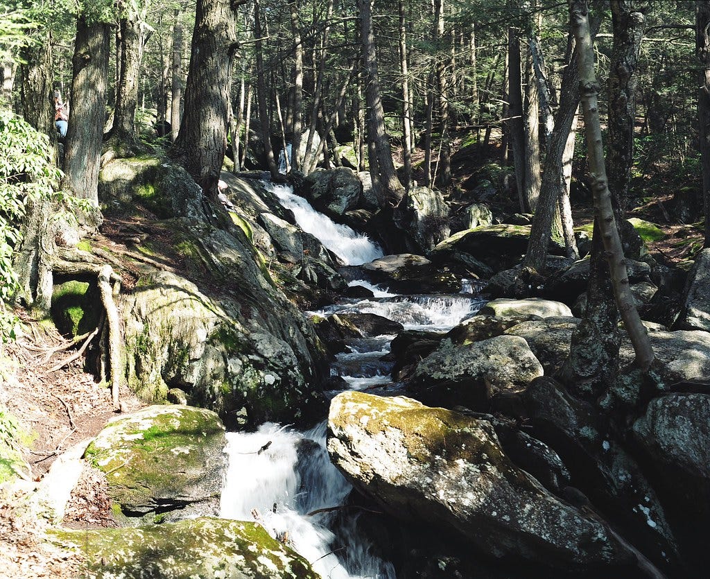 #7: Enders Brook Falls. Descending from the Litchfield Hills back to the Connecticut River and the Hartford metro area might leave you feeling bittersweet…if the novelty of Connecticut casades hasn’t faded after taking in six of them! But you’re not out of the woods just yet, thankfully. West of Granby, the immersive Enders State Forest has its own sequence of falls—the most elegant yet varied of the day! Enders Brook Falls basically amounts to a buffet of waterfall genres. Horsetails, plunges, slides, you name it. The tallest of them is around 30 feet, and a boardwalk path that offers primo views of each fall. Think of Enders Brook Falls as the final number in a musical, in which the entire cast that you’ve spent two hours watching gets trotted out to belt out the song. You could also liken it to the finale of a fireworks show, when the pyrotechnicians take whatever is left in the arsenal and set it off at once, letting the whole place fucking rip.