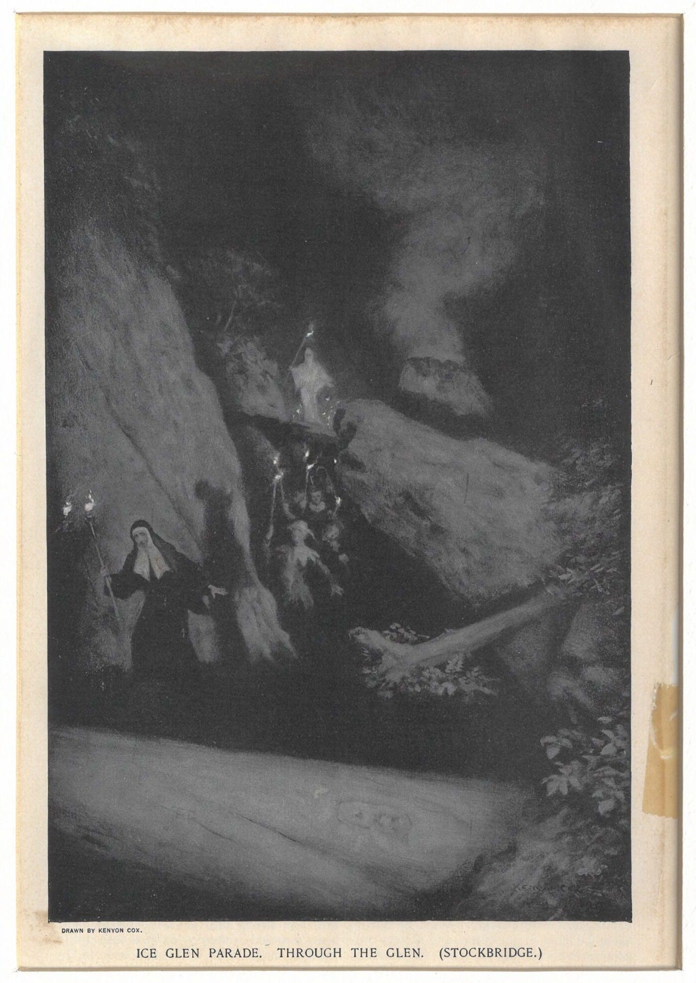You see, in the mid-19th Century, it was a summer custom for Stockbridge residents to walk into those woods carrying torches. Just for the hell of it. The winding, glowing procession would make its way to the Ice Glen—a mossy ravine where a base layer of ice survives underneath the rocks, filling the ravine with cooling vapors. Those who didn’t participate in the torch parade often gathered to watch the torchbearers, and two witnesses of note were Nathaniel and Sophia Hawthorne. After seeing the torch parade re-emerge from the forest and cross the bridge over the Housatonic River, Sophia would subseqeuently write about this ethereal viewing experience, noting how, “It looked as if a host of stars had fallen out of the sky and broken into pieces.”